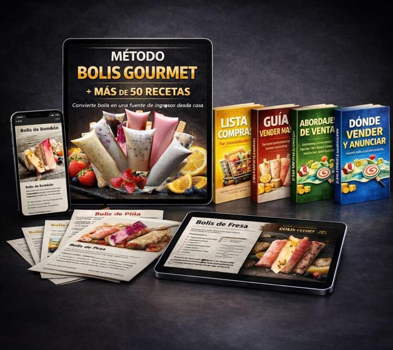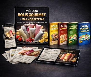 Un método práctico que te enseña a preparar bolis gourmet, organizar tus ingredientes y comenzar a vender para generar ingresos extras!